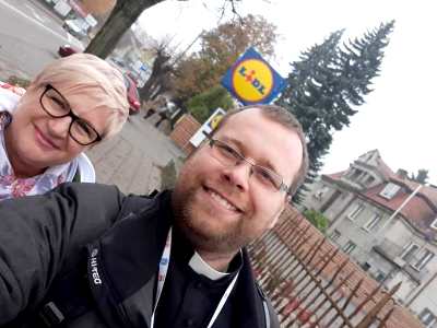W dniu 10 listopada 2018 roku w Parafii Matki Bożej Królowej Polski w Mławie odbyła się ewangelizacja uliczna zorganizowana przez ks. Marcina Niesłuchowskiego (na zdjęciu wraz z jedną z ewangelizatorek z Modlina) i Wspólnotę Ewangelizacyjną WODA ŻYWA. W akcję zaangażowane były również osoby ze Wspólnoty Odnowy w Duchu Świętym GLORIA DEI z Modlina.