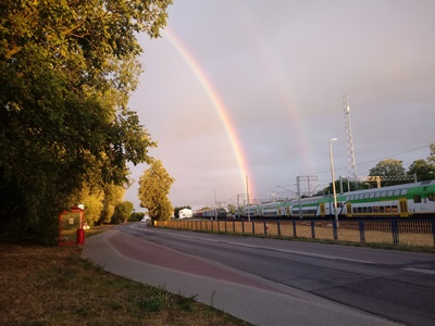 Jak piękne będzie to nasze wspólne spotkanie w Bogu. O wiele piękniejsze niż to ziemskie, którego zadatek otrzymaliśmy wszyscy przy tej niedzielnej ewangelizacji. Pan pobłogosławił to dzieło i dał znak, jak bliscy jesteśmy Jego serca, gdy pełnimy Jego wolę. Tym znakiem był 100-krotny owoc apostolski oraz tęcza, znak przymierza nad stacją PKP w Mławie po przyjeździe z Warszawy (patrz zdjęcie). Tak bowiem powiedział Pan Noemu: "Łuk mój kładę na obłoki, aby był znakiem przymierza między Mną a ziemią" (Rdz 9,13).Chwała Panu!