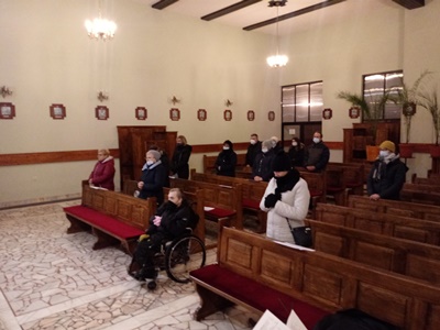 Na początku mszy nasz wspólnotowy kapłan odczytał uprzednio przyniesione i zapisane przez uczestników na karteczkach intencje mszalne. W trakcie kazania powiedział świadectwo nawiązujące do wersetu z pierwszego czytania: „Choćby wasze grzechy były jak szkarłat, jak śnieg wybieleją” (Iz 1,18). Opowiedział nam o rekolekcjach dla bezdomnych, które odbyły się w górach w okresie wiosennym. Na zakończenie rekolekcji bezdomni wyspowiadali się. Cieszyli się bardzo, że uwierzyli Bogu (zob. Dz 16,34). Bóg dał sam znak, że przyjął ich jako swe ukochane dzieci zsyłając śnieg, który pokrył całą okolicę, jakby chciał powiedzieć, że wszystkie ich najgorsze grzechy jak śnieg wybielały.