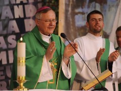 W homilii Biskup mówił ,że Kościół powinien być sakramentem miłości i delikatności Boga. Gdybyśmy weszli z szyldem Prawa do ludzi na plac woodstockowy odrzucili by to. Gdy wchodzimy jako sakrament Boskiej Miłości i delikatności – ludzie są to w stanie odczytać i przyjąć. Biskup przypomniał również, że jednym z duchowych błędów, kiedy się powierzyło życie Jezusowi jest niesienie na sobie przegranych chwil, lat. To taki diabelski chwyt, że zamiast iść i żyć bez przerwy oglądamy się w przeszłość.
